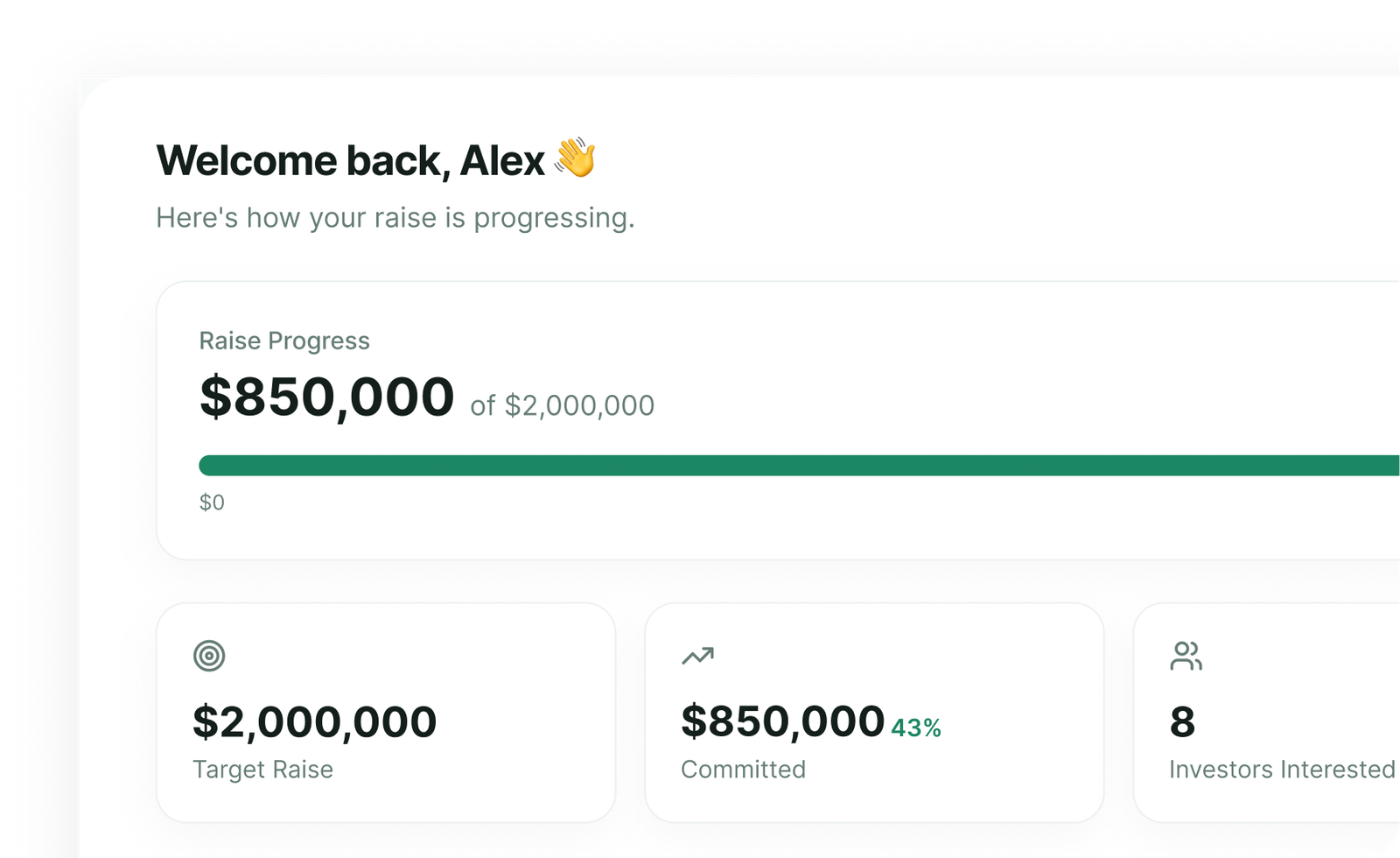 Track investor interest, capital commitments, and progress in real-time. You know where you stand, every step of the way.