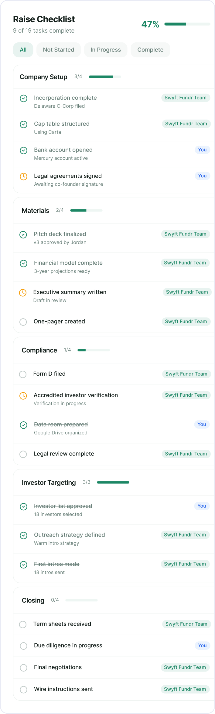Join 42+ companies who closed their rounds through Swyft Fundr.
